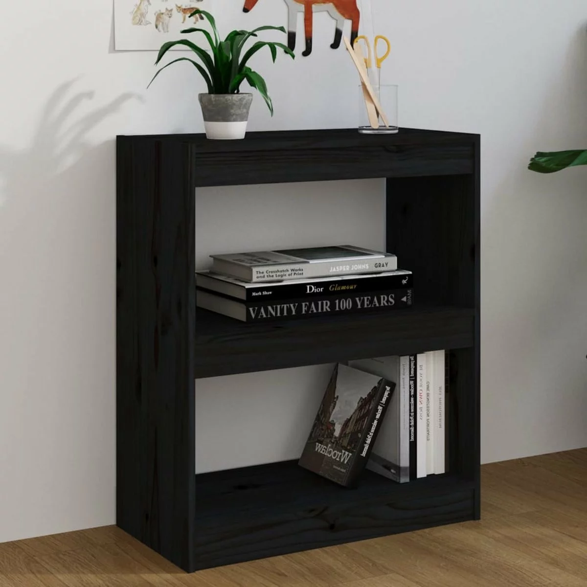 De boekenkast is van massief grenenhout gemaakt, waardoor hij stevig en stabiel is. De boekenkast heeft 2 ruime vakken en biedt voldoende ruimte om tijdschriften, boeken, dvd’s, multimedia-apparaten en decoratieve spullen goed georganiseerd en binnen handbereik te houden. Het meubel is zeer veelzijdig, omdat het ook als kamerscherm gebruikt kan worden. Het is geschikt voor in je gang of andere woonruimte. De opbergkast is eenvoudig te reinigen met een vochtige doek.