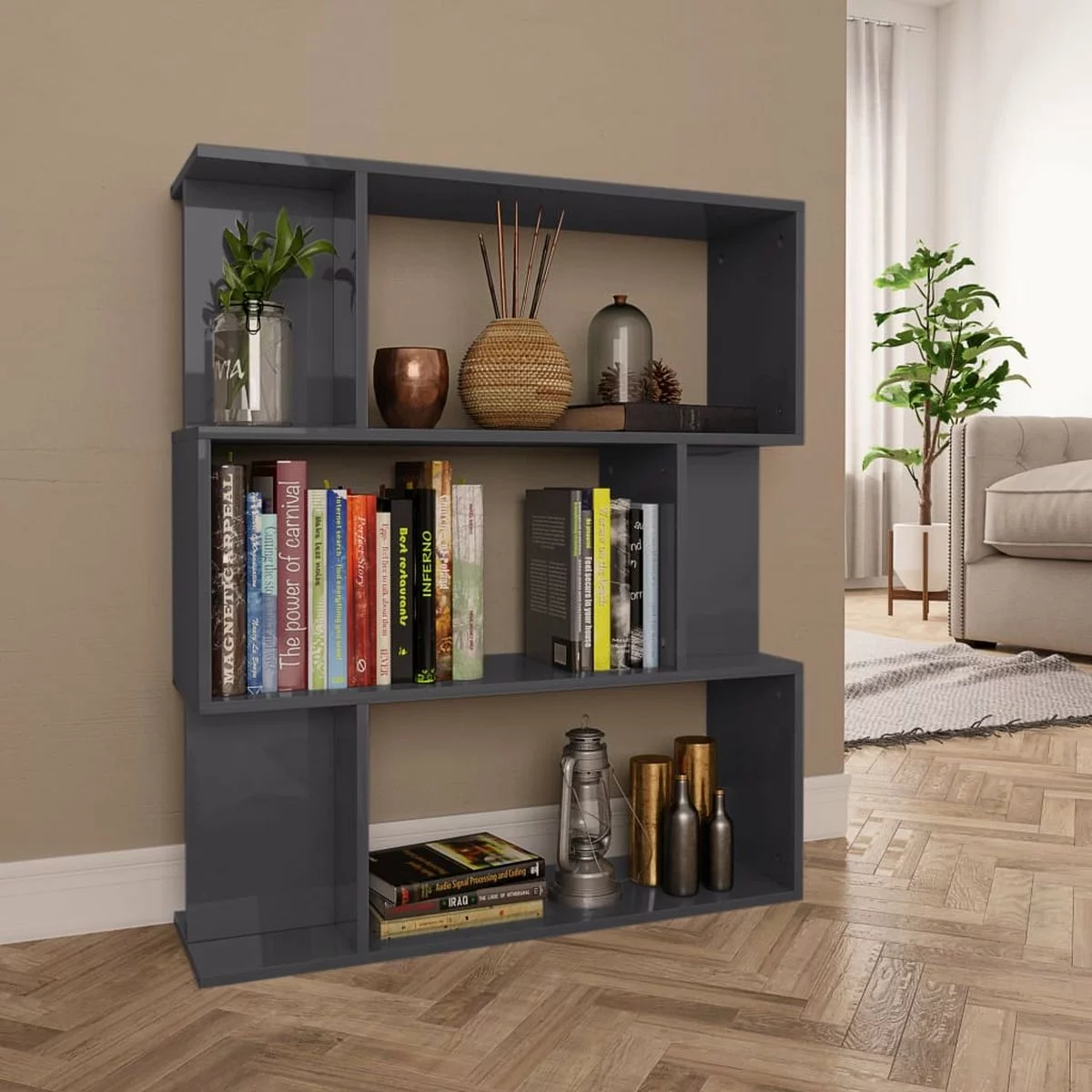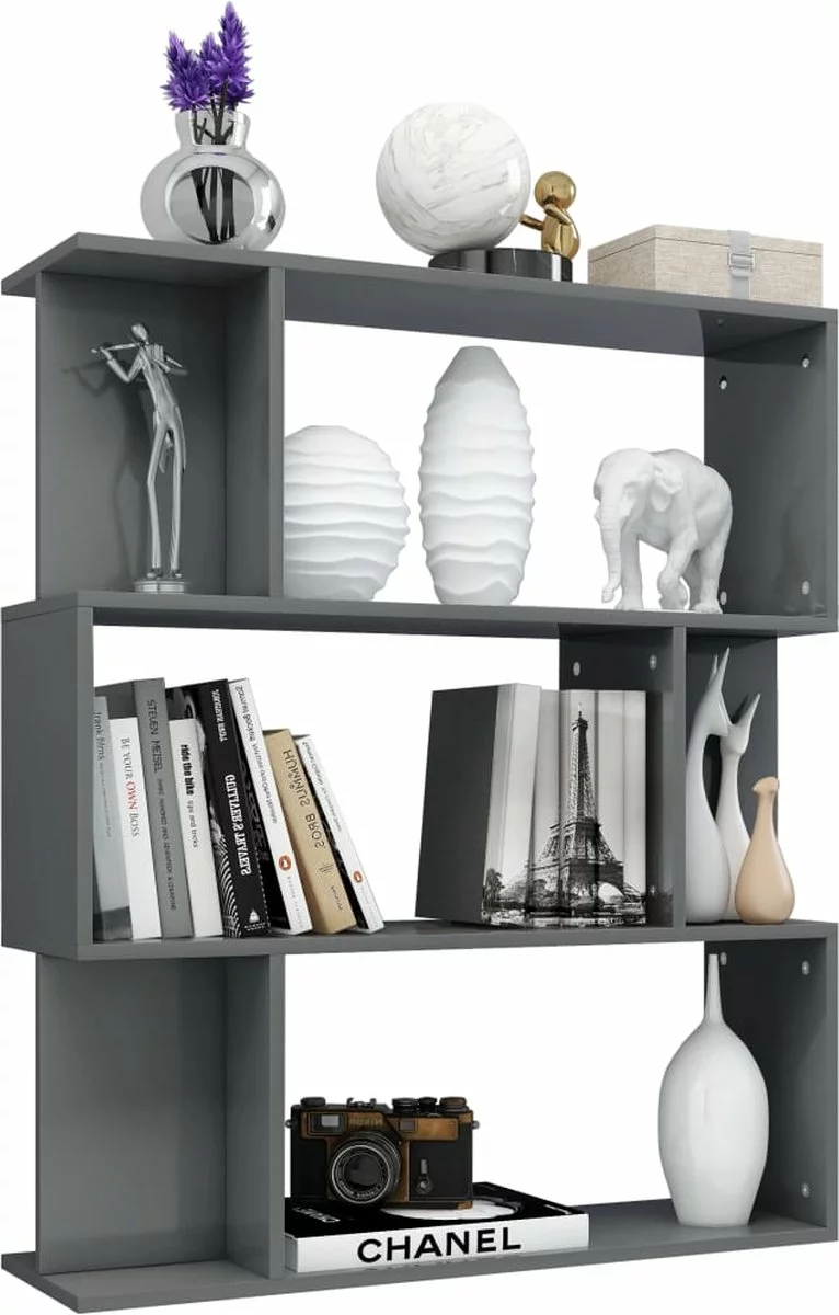 De kast is gemaakt van bewerkt hout waardoor hij stevig en duurzaam is. De boekenkast is ontworpen met 3 ruime vakken en 6 kleinere vakken. Hij biedt voldoende ruimte om tijdschriften, boeken, dvd’s, multimedia-apparaten en decoratieve spullen goed georganiseerd en binnen handbereik te houden. Het meubel is zeer veelzijdig, omdat het ook als kamerscherm gebruikt kan worden. Het is geschikt voor in je gang of andere woonruimte.