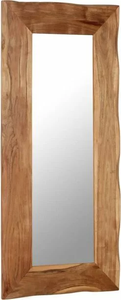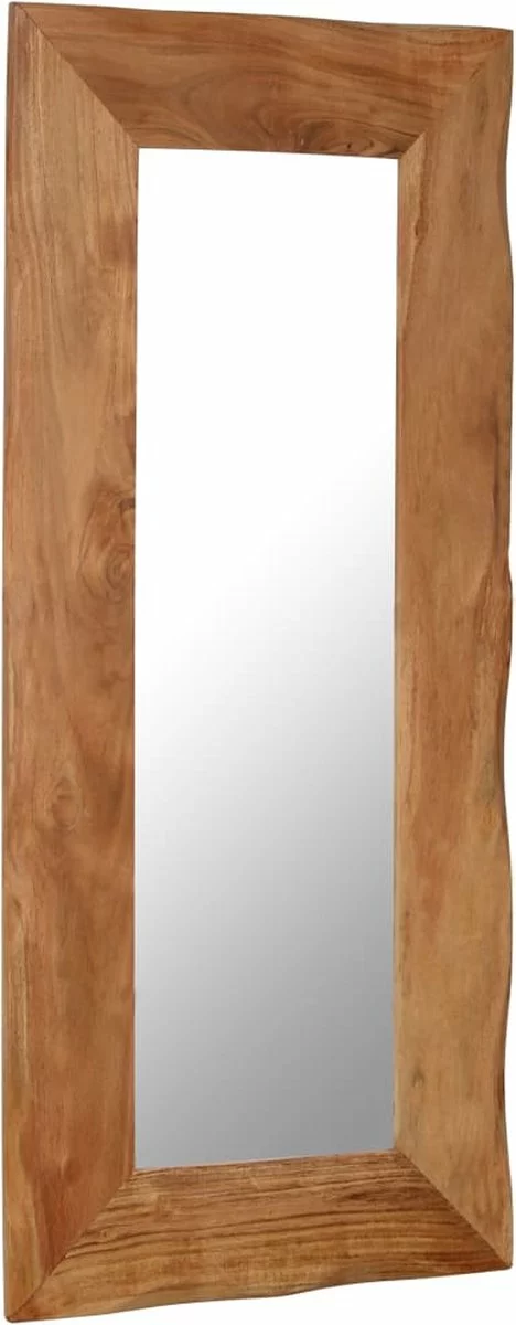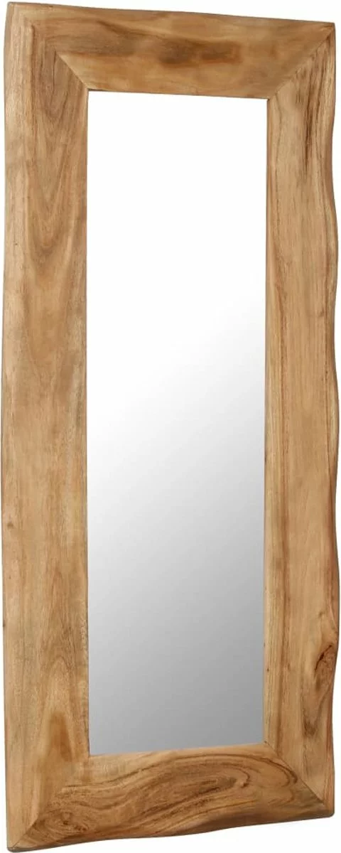 Het frame is gemaakt van duurzaam en stevig massief acaciahout, waardoor deze spiegel elke ruimte een retro uitstraling geeft. Het perfecte vakmanschap van het massieve acaciahout geeft deze prachtig ontworpen spiegel meer charme. De spiegel kan worden gebruikt in de badkamer of hal, en kan dienen als een make-up-spiegel, een decoratiespiegel of een halspiegel. Er is geen montage vereist. Daarnaast kan hij zowel horizontaal als verticaal worden geplaatst dankzij de dubbele hangers aan de achterkant van de spiegel.
