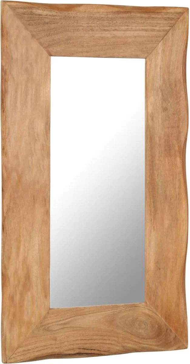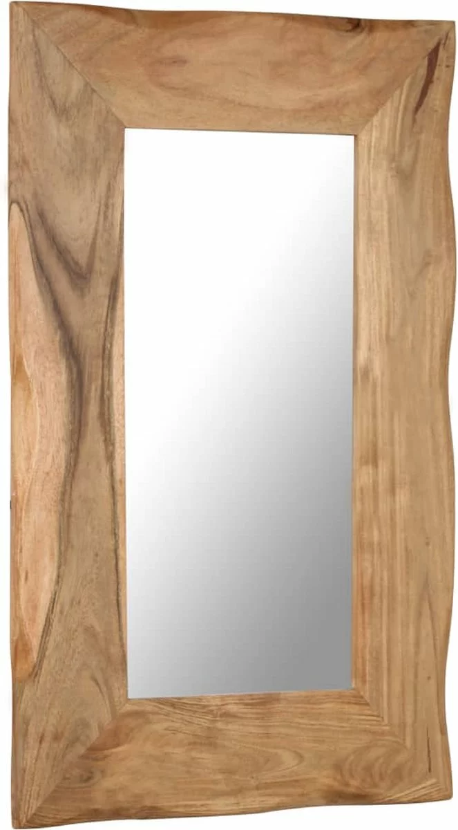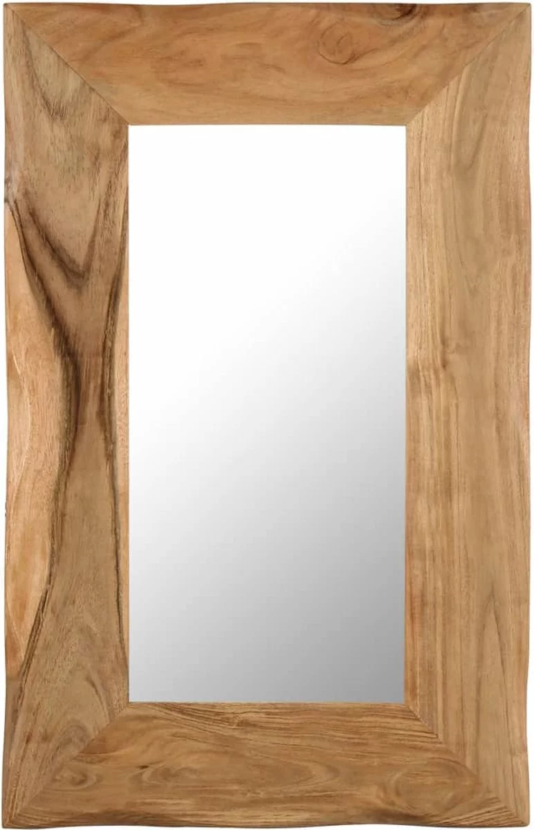 Het frame is gemaakt van stevig en duurzaam massief acaciahout, waardoor deze unieke spiegel elke ruimte een retro uitstraling geeft. Het perfecte vakmanschap van het massieve acaciahout geeft deze prachtig ontworpen spiegel meer charme. De spiegel kan worden gebruikt in de badkamer of hal, en kan dienen als een make-up-spiegel, een decoratiespiegel of een halspiegel. Er is geen montage vereist. Daarnaast kan hij zowel horizontaal als verticaal worden geplaatst dankzij de dubbele hangers aan de achterkant van de spiegel.