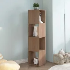 Deze staande kast is gemaakt van hoogwaardig spaanplaat en is buitengewoon duurzaam en stabiel. De draaikast is 360 graden draaibaar en neemt slechts een klein vloeroppervlak in beslag. De ruime vakken bieden plaats aan al je decoratieve objecten, planten, speelgoed, enz. Deze opbergkast is gemakkelijk schoon te maken met een vochtige doek.