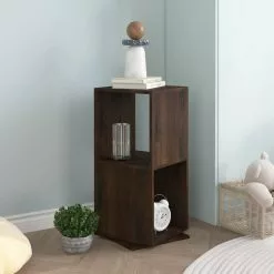 Deze staande kast is gemaakt van hoogwaardig spaanplaat en is buitengewoon duurzaam en stabiel. De draaikast is 360 graden draaibaar en neemt slechts een klein vloeroppervlak in beslag. De ruime vakken bieden plaats aan al je decoratieve objecten, planten, speelgoed, enz. Deze opbergkast is gemakkelijk schoon te maken met een vochtige doek.