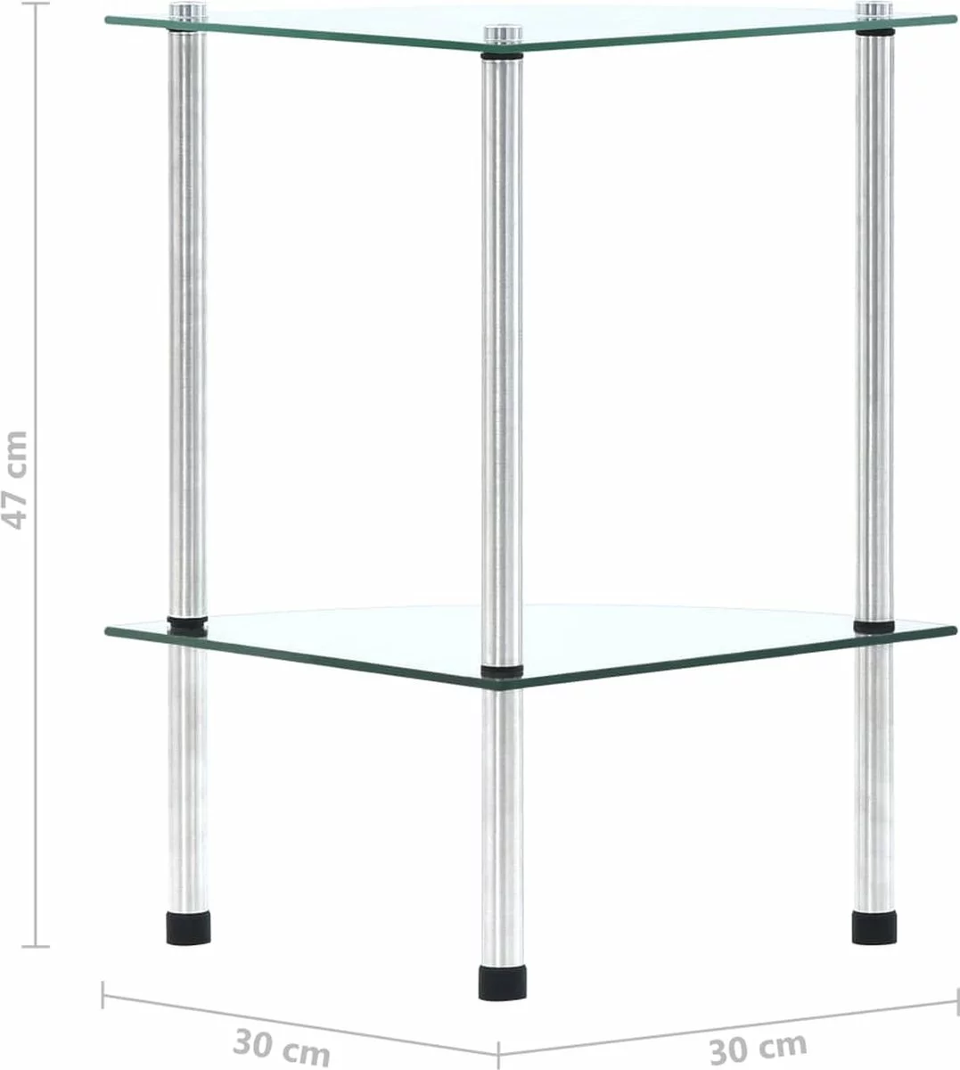 - Materiaal: gehard glas en roestvrijstalen frame