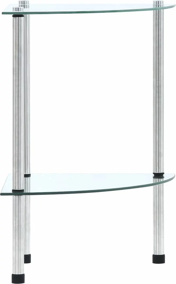 De vitrinekast is ontworpen met twee lagen voor voldoende opbergruimte. Je kunt het multifunctionele kastje in de woonkamer of op kantoor gebruiken om je verzamelobjecten, fotolijsten, potplanten te tonen, of in de badkamer om je benodigdheden georganiseerd te houden. Het is gemaakt van dik, gehard glas en robuust, duurzaam roestvrij staal. Dit meubel is buitengewoon stevig en veilig. Bovendien is het gladde oppervlak eenvoudig te reinigen met een vochtige doek. Het is eenvoudig te monteren.