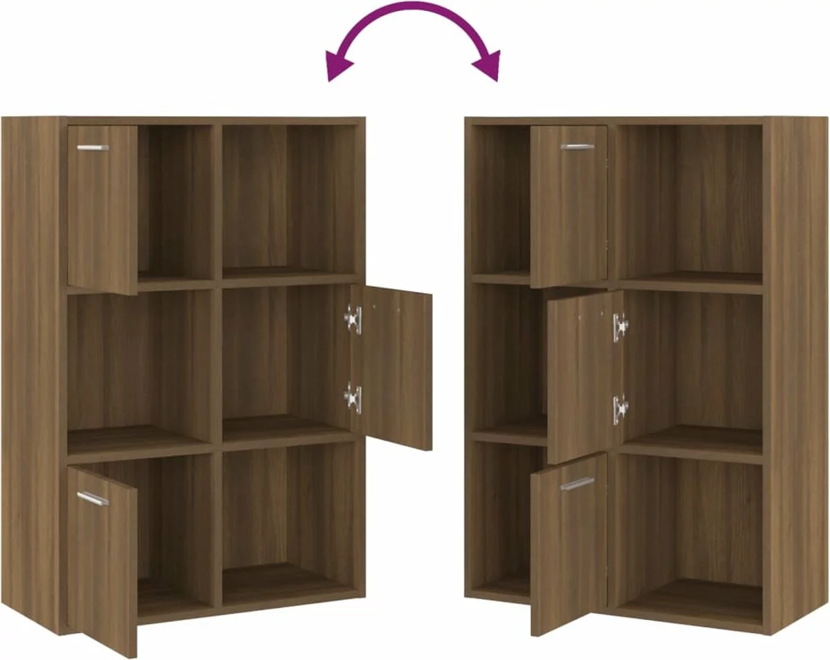 - Veel opbergruimte: de boekenkast heeft 3 open vakken en 3 vakken met deuren en biedt voldoende ruimte om tijdschriften, boeken, dvd’s, multimedia-apparaten en decoratieve spullen goed georganiseerd en binnen handbereik te houden.