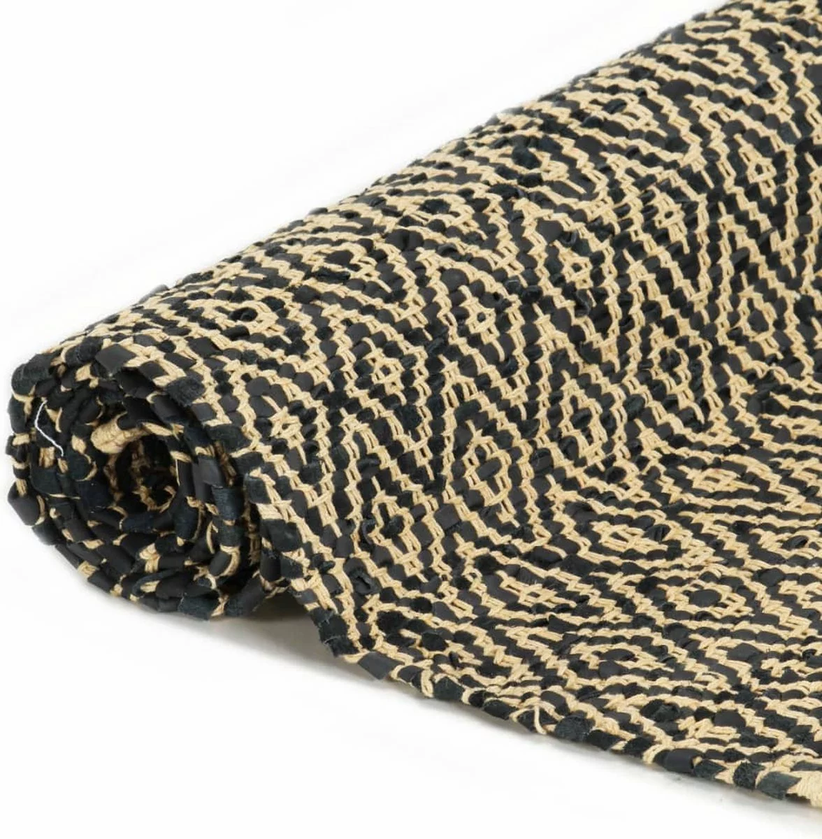 Dit tapijt is gemaakt van leer en katoen, is soepel en voelt zacht aan. Met zijn ruitjesontwerp, rijke structuur en mooie franjes, zal het tapijt een chique vleugje aan je interieur geven. Let op, elk kleed is onderscheidend; variaties in kleur en ontwerp kunnen optreden omdat elk product handgemaakt is. De levering is willekeurig.