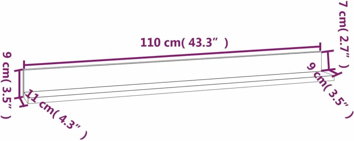 - Afmetingen: 110 x 11 x 9 cm (B x D x H)