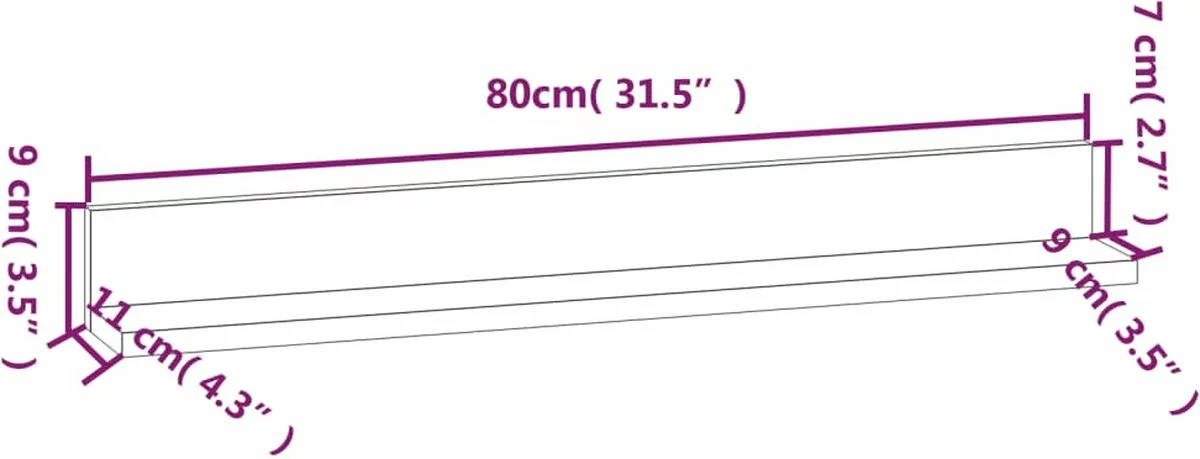 - Afmetingen: 80 x 11 x 9 cm (B x D x H)