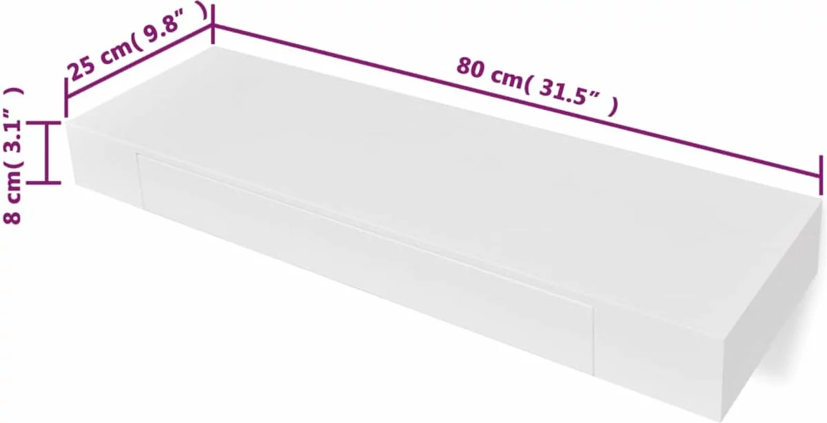 Deze wandplank heeft een onzichtbaar montagesysteem waardoor hij eenvoudig te installeren is en dient als de perfecte plek om spullen, zoals prijzen, boeken, verzamelobjecten en ornamenten, op te bergen. Hij heeft een lade voor kleine spullen zoals sleutels, dvd’s, notitieblokken, pennen en andere snuisterijen. Het schap past bij elk interieur en geeft een lege muur een prachtige functie! Deze hangplank is gemaakt van hoogwaardig MDF met een matte afwerking.