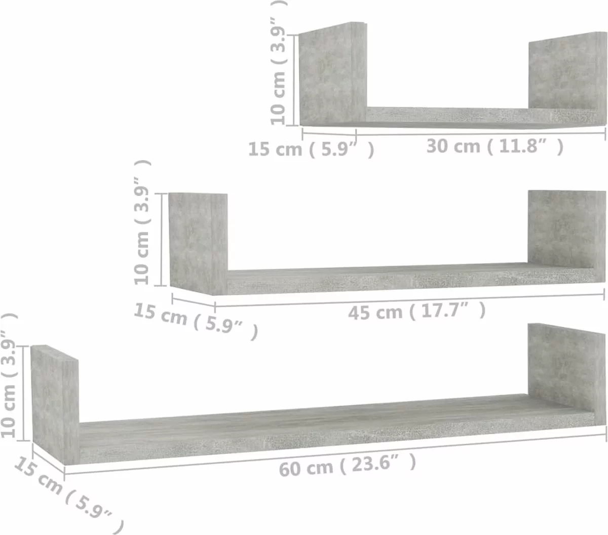 - Afmetingen middelste: 45 x 15 x 10 cm (L x B x H)