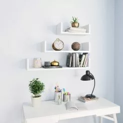 De schappen zijn gemaakt van bewerkt hout waardoor ze stevig en duurzaam zijn. Het U-vormige ontwerp biedt perfecte weergave- of opbergruimte voor boeken, cd’s, bloemen en andere spullen.