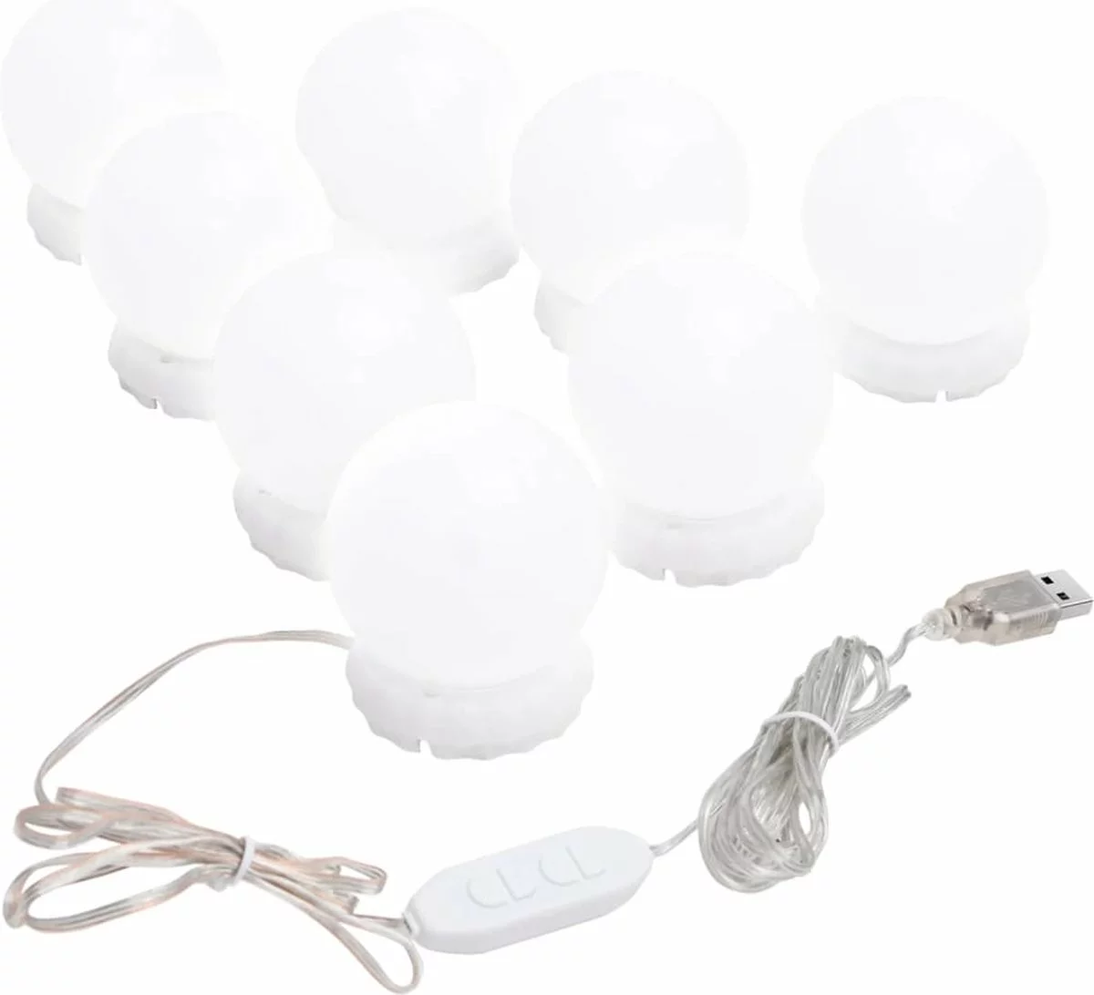 De spiegelrand is geslepen, waardoor hij een strakke uitstraling heeft. Je kunt ook meerdere spiegels aanschaffen en deze in een decoratief patroon ophangen. De zelfklevende make-upverlichting heeft verschillende kleurinstellingen voor verschillende doeleinden, afhankelijk van je behoeften. Vanwege de lege ruimtes tussen twee lampen is overtollig draad onzichtbaar weg te werken door deze om de onderkant van de LED-peertjes te wikkelen. Op die manier verkrijg je het beste doe-het-zelfeffect en een strakke en naadloze spiegel.