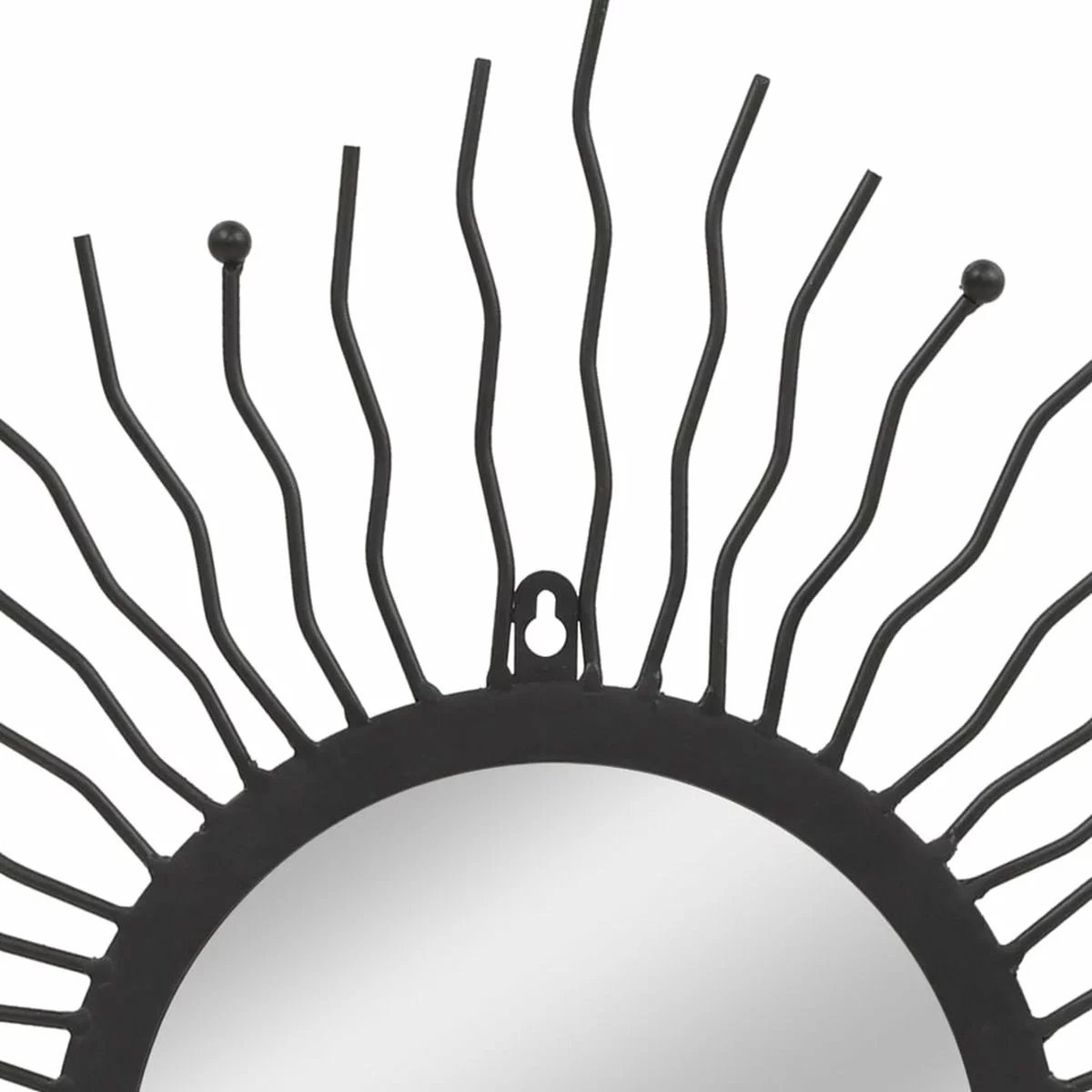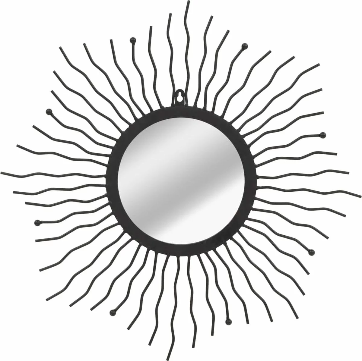 Deze wandspiegel is ontworpen met een gepoedercoat stalen frame in een sunburst ontwerp, dat een speel vleugje aan je interieur geeft. Dankzij het voorgeboorde gat aan de bovenkant kan de spiegel eenvoudig aan de muur worden gemonteerd.