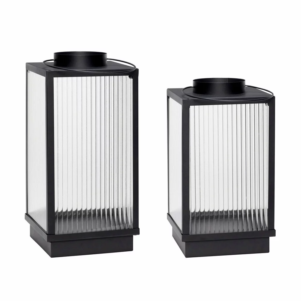 Hubsch Lantaarns Metaal Zwart- Set Van 2 Stuks