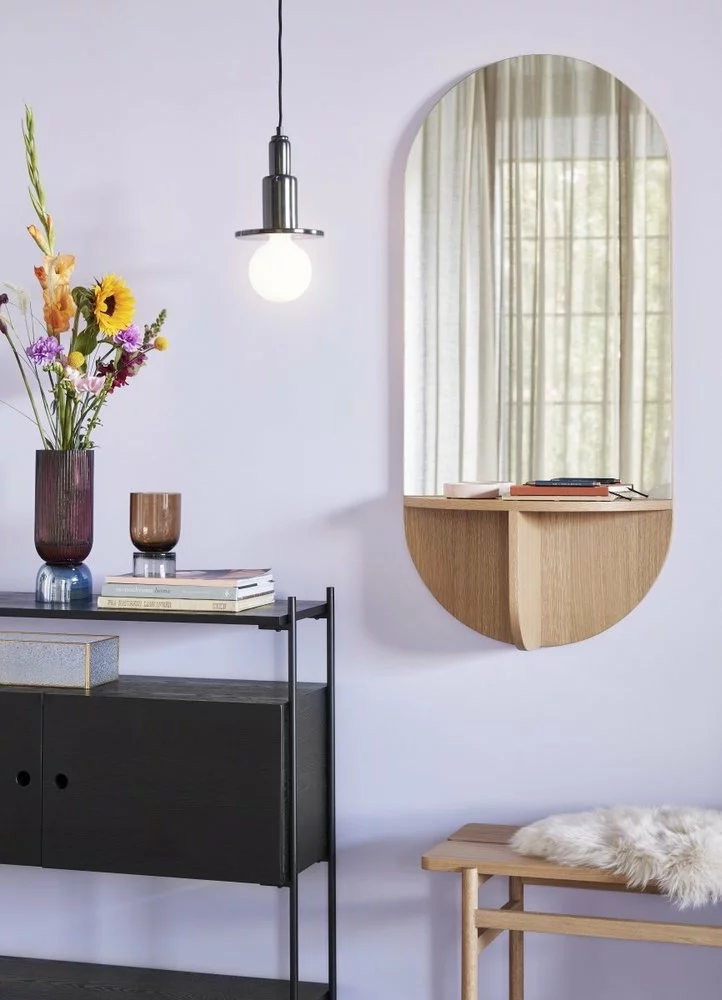 Hubsch Wandspiegel eikenhout met plank – naturel voor € 179,10 bij Living and Company. ✅ Vandaag besteld is morgen al in huis ✅ 30 dagen niet goed geld terug.