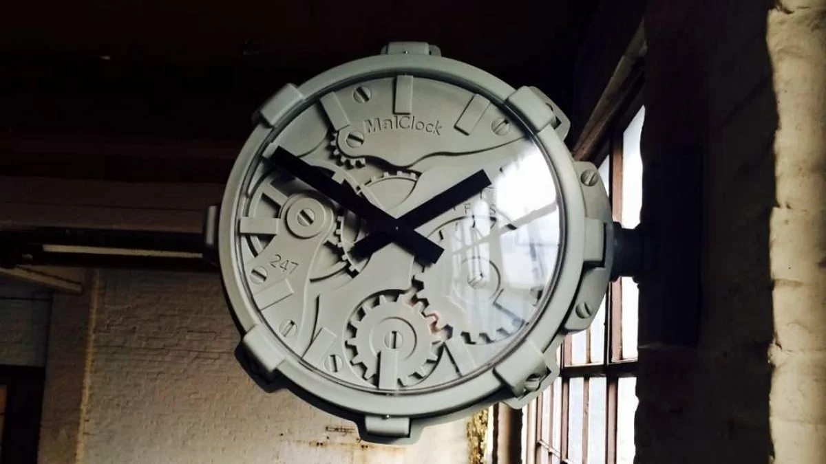 Mal Clock kan op de muur of plafond worden gemonteerd en kan zelfs gebruikt worden, buitenshuis bijv. aan een boom.