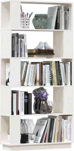 Furniture Limited – Boekenkast/kamerscherm 80x25x163,5 Cm Massief Grenenhout Wit