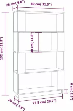 Furniture Limited – Boekenkast/kamerscherm 80x25x132 Cm Massief Grenenhout