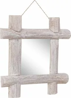 Furniture Limited – Spiegel Houtblokken 50×50 Cm Massief Gerecycled Hout Wit