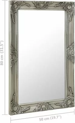 Furniture Limited – Wandspiegel Barok Stijl 50×80 Cm Zilverkleurig